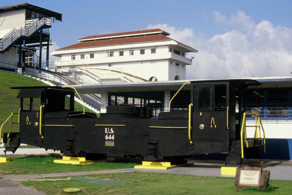 Lange vor dem Bau des Kanals hatte man den Bau einer Eisenbahnlinie von Balboa nach Colón in die Wege geleitet. 1855 wurde die Linie eröffnet, und später wurde sie am Pazifik noch etwas ins Meer verlängert, damit grössere Schiffe anlegen konnten. Die Länge der Linie ist 76 km, die grösste Steigung 10 mm, die Spurweite war 1524 mm, sie war ursprünglich einspurig, wurde aber später zweispurig. Sie weist eine spektakuläre Brücke und einen Tunnel auf. Spektakulär ist auch die Ueberquerung des Gatún-Sees auf einem Damm. Nach einem erfolgreichen Anfang führte die Eröffnung der Central Pacific-Union Pacific Railroad in Promontory im Teilstaat Utah im Jahre 1869 zu einem starken Niedergang, und die Strecke wurde zu einem Verlustgeschäft. Mit dem Beginn des Baus eines Kanals ohne Schleusen durch die Franzosen wurde die Eisenbahn durch diese aufgekauft und diente fortan auch als Material-, Bau- und Arbeitertransportbahn. Dafür beschaffte man Dampflokomotiven und Materialtransportwagen. Bei der Uebernahme des Kanalbaus durch die Amerikaner wurde der Betriebshof unter Wasser gesetzt und das Rollmaterial diente als Grundlage für den Bau der Gatún-Schleuse. Eine Lok und 15 Wagen wurden geborgen, eine Lok und zwei Güterwagen restauriert. Sie stehen vor dem Besucherzentrum an der Miraflores-Schleuse des Kanals. Der Kanal folgte nun im Grossen ganzen der Eisenbahnlinie. Nach der Eröffnung des Kanals und insbesondere nach dem Bau einer neuen Strasse vom Atlantik zum Pazifik 1943 verlor die Bahnlinie ihre Einkünfte. Die Infrastruktur wurde langsam aber sicher zerstört.