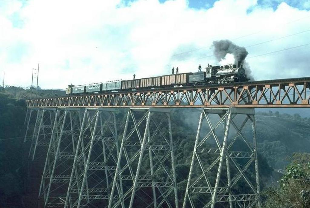 Between 1877 and 1908 the first railway line was built. It connected Guatemala City with the Pacific coast and the south western part of the country. As a second part followed the line from Puerto Barrios on the Atlantic coast to Guatemala City. Thereafter followed further lines, and at its high point there was a network of around 800 km with the track gauge of 914 mm, the largest network in Central America, without connexion to the neighbouring countries except for the line from Zacapa via Chiquimula to El Salvador which lasted until the 80's. In addition, the Pacific network at Tecun Umán borders the standard gauge (1435 mm) Mexican rail net at Ciudad Hidalgo, with both track gauges on the bridge between the two places. But this was only used for the transfer of Mexican goods wagons for discharging in Guatemala and was probably last used in the 90's. The network always operated with financial support from the state. From 1912 onwards the transport of bananas was the main base for the goods transport. IRCA, International Railway of Central America, operated about 600 km of lines. In 1933 IRCA and UFCO, United Fruit Company, made an agreement for the costs of the banana transport. In 1945 UFCO stopped the banana plantations, and the rights returned to the state. From 1950 onwards, eight axle diesel locomotives by General Electric were introduced, but the last steam locomotives continued for another 30 years. From 1968 onwards FEGUA - Ferrocarriles de Guatemala was the operator, but in March 1996 rail transport stopped as it was loosing money.